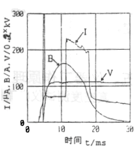 整機(jī)由測(cè)量控制電路、電場(chǎng)高壓產(chǎn)生電路、磁場(chǎng)線圈電流控制電路、通訊、打印機(jī)、液晶顯示電路等組成。其工作過程為:由測(cè)量控制電路發(fā)出指令,由開關(guān)電源給磁場(chǎng)電容充電,通過控制電路監(jiān)控,當(dāng)磁場(chǎng)電容上的電壓達(dá)到預(yù)定值后,控制電路發(fā)出兩路控制信號(hào)分別控制電場(chǎng)高壓的輸出和磁場(chǎng)線圈電流的導(dǎo)通,使滅弧室處于強(qiáng)電場(chǎng)、強(qiáng)磁場(chǎng)的狀態(tài)中,滅弧室開始放電,產(chǎn)生離子電流I,如圖2中的曲線I所示。該電流經(jīng)取樣電阻R和預(yù)處理電路后輸入單片機(jī),最后經(jīng)運(yùn)算由液晶顯示屏顯示測(cè)得的真空度值。