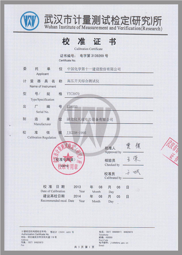轉(zhuǎn)載:"YTC3970高壓開關(guān)動(dòng)特性測(cè)試儀鑒定證書" 請(qǐng)注明來源于儀天成電力。 更多技術(shù)問題請(qǐng)致電儀天成電力客戶服務(wù):027-87876585,技術(shù)部專線:027-87876585,在線客服: